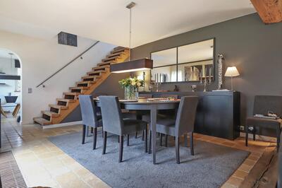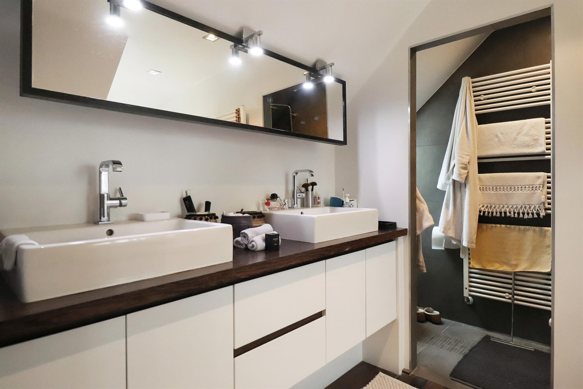 Nichée dans une petite rue pittoresque de Lasne, proche de la place de Renival, cette charmante villa fera le bonheur de ceux qui souhaitent vivre au calme et à l'abri des regards. Accompagnée d'un appartement de rez-de-chaussée, elle conviendra parfaitement aux familles hébergeant un proche, aux professions libérales, ou encore à ceux qui souhaitent bénéficier d'un joli revenu locatif. Au rez-de-chaussée, la maison se compose d'un hall d'entrée, d'un vaste et lumineux séjour ouvert sur la terrasse et agrémenté d'un feu ouvert, d'une cuisine équipée avec coin déjeuner bénéficiant elle aussi d'un accès vers l'extérieur, ainsi que d'un garage et d'une buanderie. Un bel escalier constitué d'anciennes ailes de moulin permet d'accéder à l'étage où sont situées trois chambres se partageant une salle de bain et une salle de douche, ainsi qu'une superbe suite parentale comprenant un dressing, une salle de bain et une douche à l'italienne. L'appartement de rez-de-chaussée bénéficie de sa propre terrasse et se compose d'un hall d'entrée, d'un séjour avec insert à bois, d'une cuisine ouverte, d'une chambre et d'une salle de douche. A l'extérieur, le bien est entouré d'un magnifique jardin garni de fleurs, d'arbustes et d'arbres majestueux, tandis qu'une cour pavée offre plusieurs places de parking. Au-delà du jardin, les prairies et les champs s'étendent à perte de vue.Property details