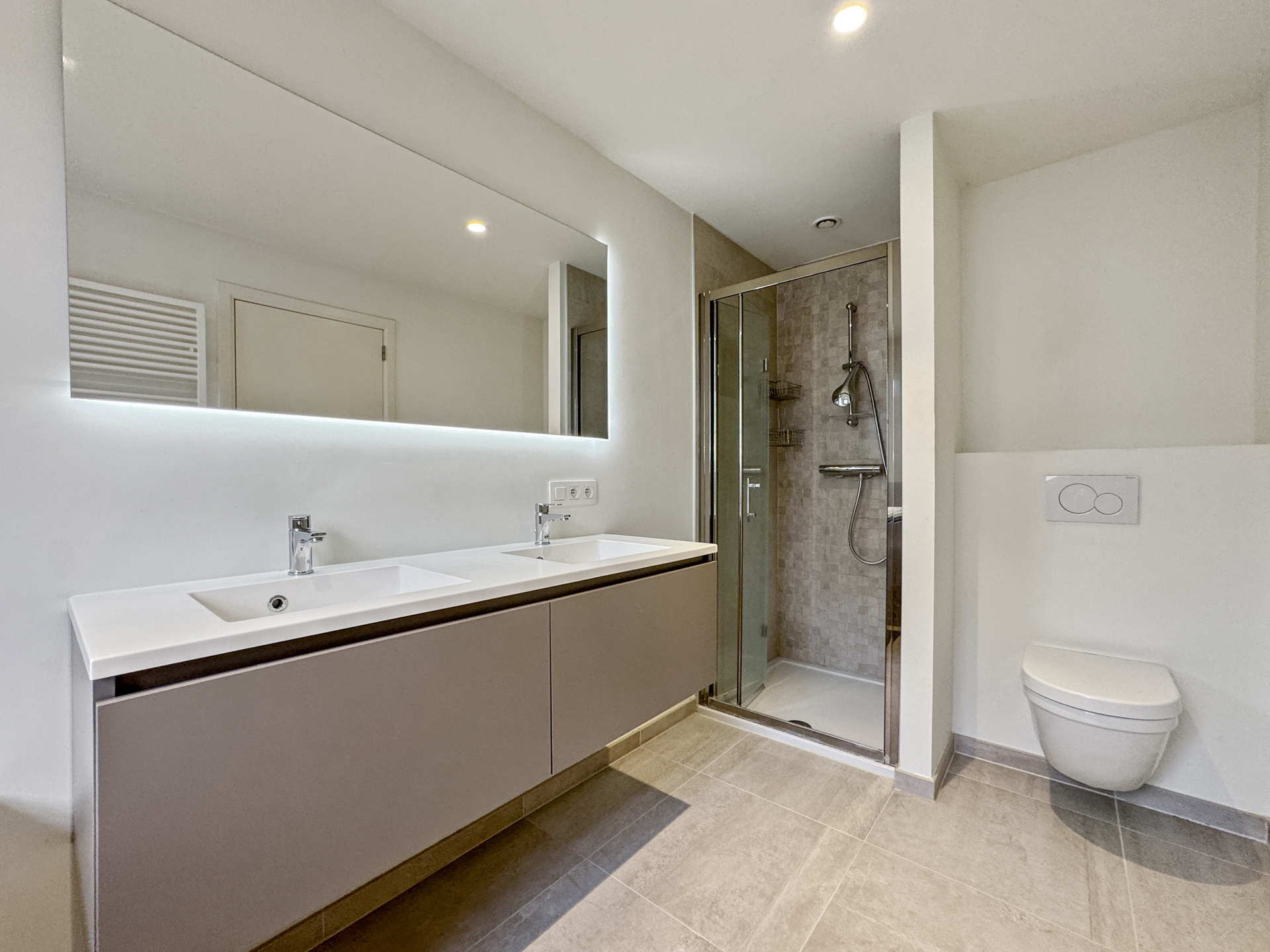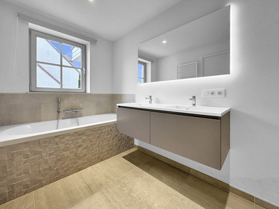 Magnifique ensemble d'appartements situé en plein centre du village d'où l'on peut profiter des nombreux commerces de proximité (boulangerie, banque, boucherie, poissonnerie,...). Les bâtiments construits en 2018 dans un superbe style brabançon, telles de grandes villas, offrent un cadre de vie idéal car il est de petite taille et ne comprend que 2 étages. Les appartements disposent tous d'un ascenseur, de grands espaces extérieurs avec peu de vis-à-vis belles et d'un large parking avec des caves dans les sous-sol. Nous proposons à la location un appartement de deux chambres situé au premier étage. L'appartement dispose d'une superficie totale d'environ 110 mètres carrés dont plus de 40 mètres carrés de séjour ! A l'extérieur une large terrasse couverte de 21 mètres carrés est orientée au sud-ouest. La cuisine, séparée du living et entièrement équipée, possède un bel espace pour installer un coin à déjeuner ce qui est un réel plus pour ce lumineux appartement. Les deux chambres dispose chacune d'une salle d'eau attenante. L'appartement est déjà libre d'occupation !Property details
