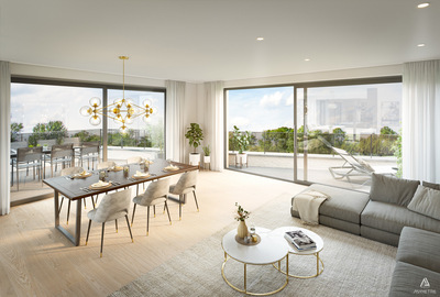 SOUS OPTION - 60% VENDU - TVA à 6% JUSQU'AU 30 JUIN 2025 - Découvrez ce sublime penthouse contemporain de trois chambres avec une vue imprenable, un véritable écrin de lumière niché entre ville et campagne. Avec ses vastes espaces, ses grandes baies vitrées et son agencement soigné, ce bien offre une expérience de vie unique, sublimée par une incroyable cuisine ouverte, idéale pour les amateurs de convivialité et ses lignes fluides et contemporaines. Profitez de deux grandes terrasses qui s'ouvrent sur la campagne environnante, offrant des panoramas à couper le souffle et un cadre paisible. Les deux salles d'eau, élégamment aménagées, ajoutent une touche de raffinement supplémentaire à ce lieu d'exception. Parfaitement situé, ce penthouse allie accessibilité urbaine et immersion dans la nature, pour une qualité de vie incomparable.Détails du bien