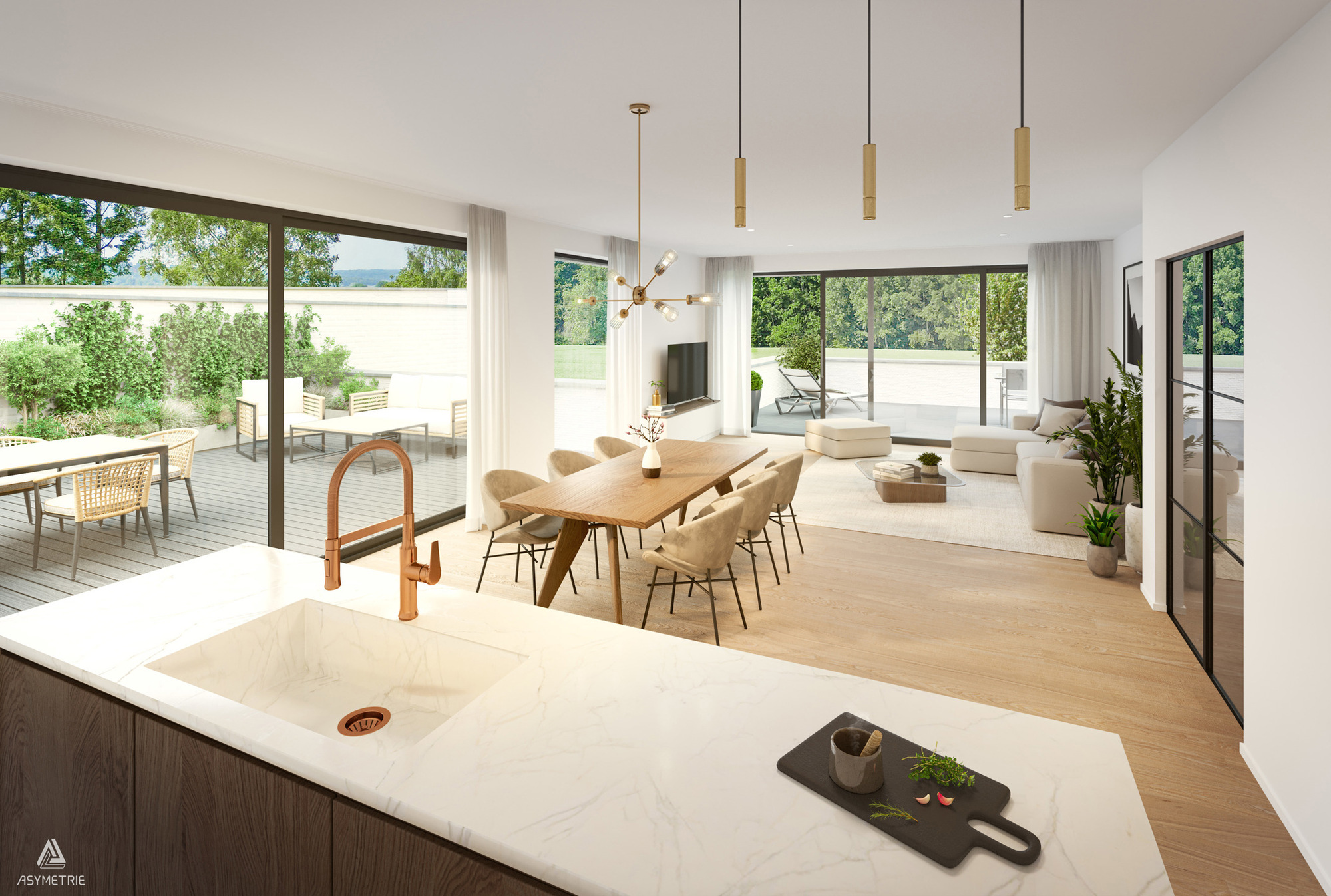 Découvrez ce sublime appartement contemporain de trois chambres, un véritable écrin de lumière niché entre ville et campagne, avec une vue à couper le souffle. Au premier étage, avec ses vastes espaces, ses grandes baies vitrées et son agencement soigné, ce bien offre une expérience de vie unique, sublimée par une incroyable cuisine ouverte, idéale pour les amateurs de gastronomie et de convivialité. Profitez de deux vastes terrasses de plus de 125 m² qui s'ouvrent sur la campagne environnante, offrant des panoramas à couper le souffle et un cadre paisible. Les deux salles d'eau, élégamment aménagées, ajoutent une touche de raffinement supplémentaire à ce lieu d'exception. Parfaitement situé, ce bien allie accessibilité urbaine et immersion dans la nature, pour une qualité de vie incomparable.Détails du bien