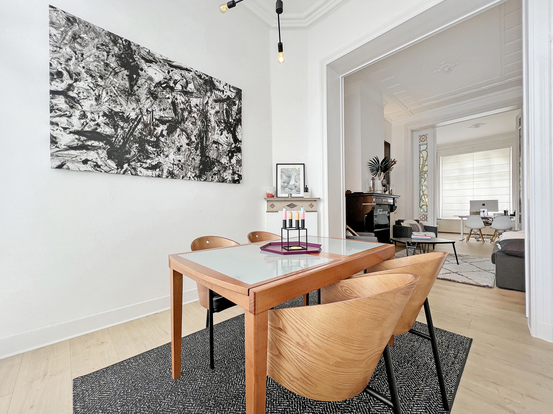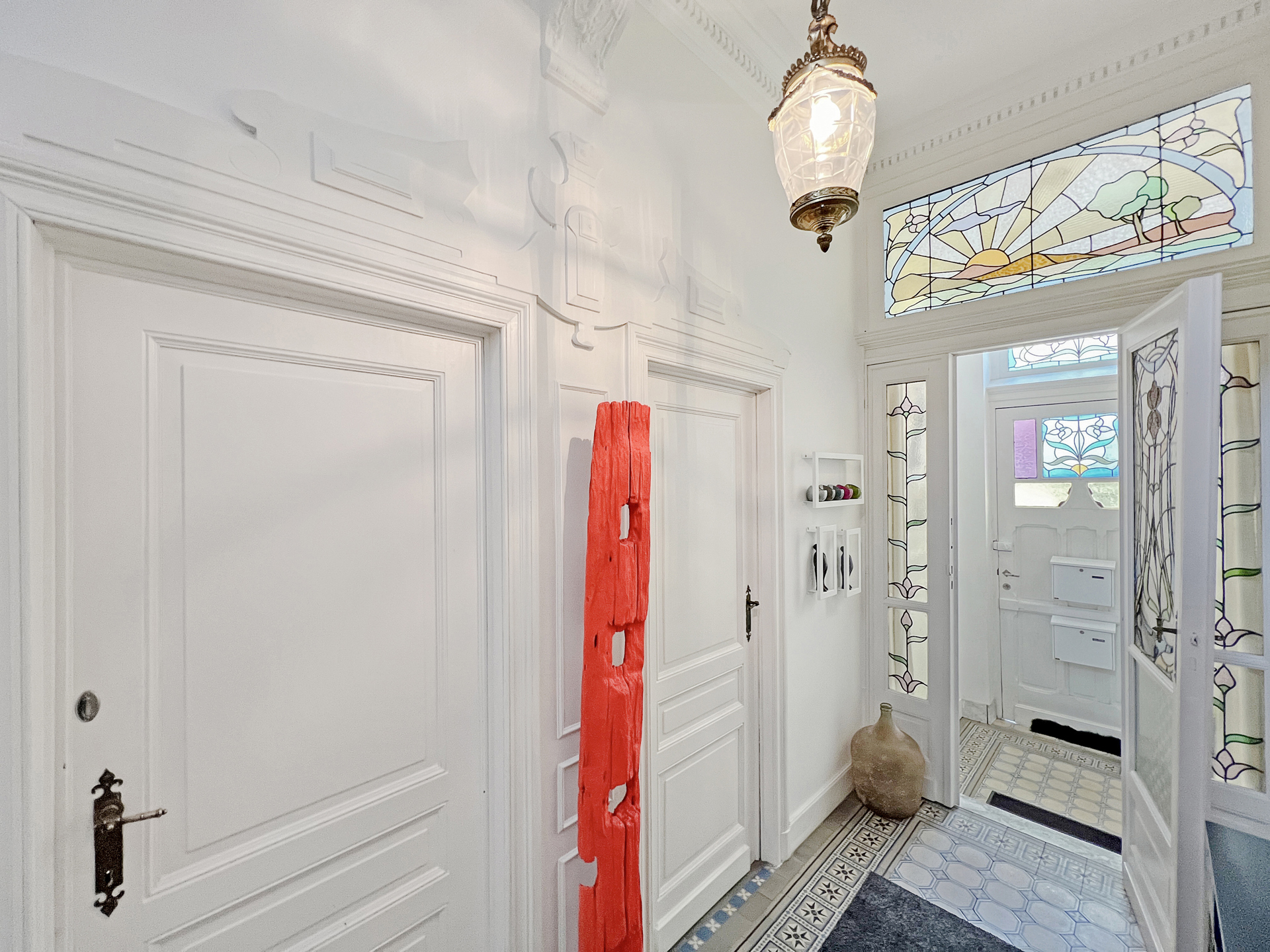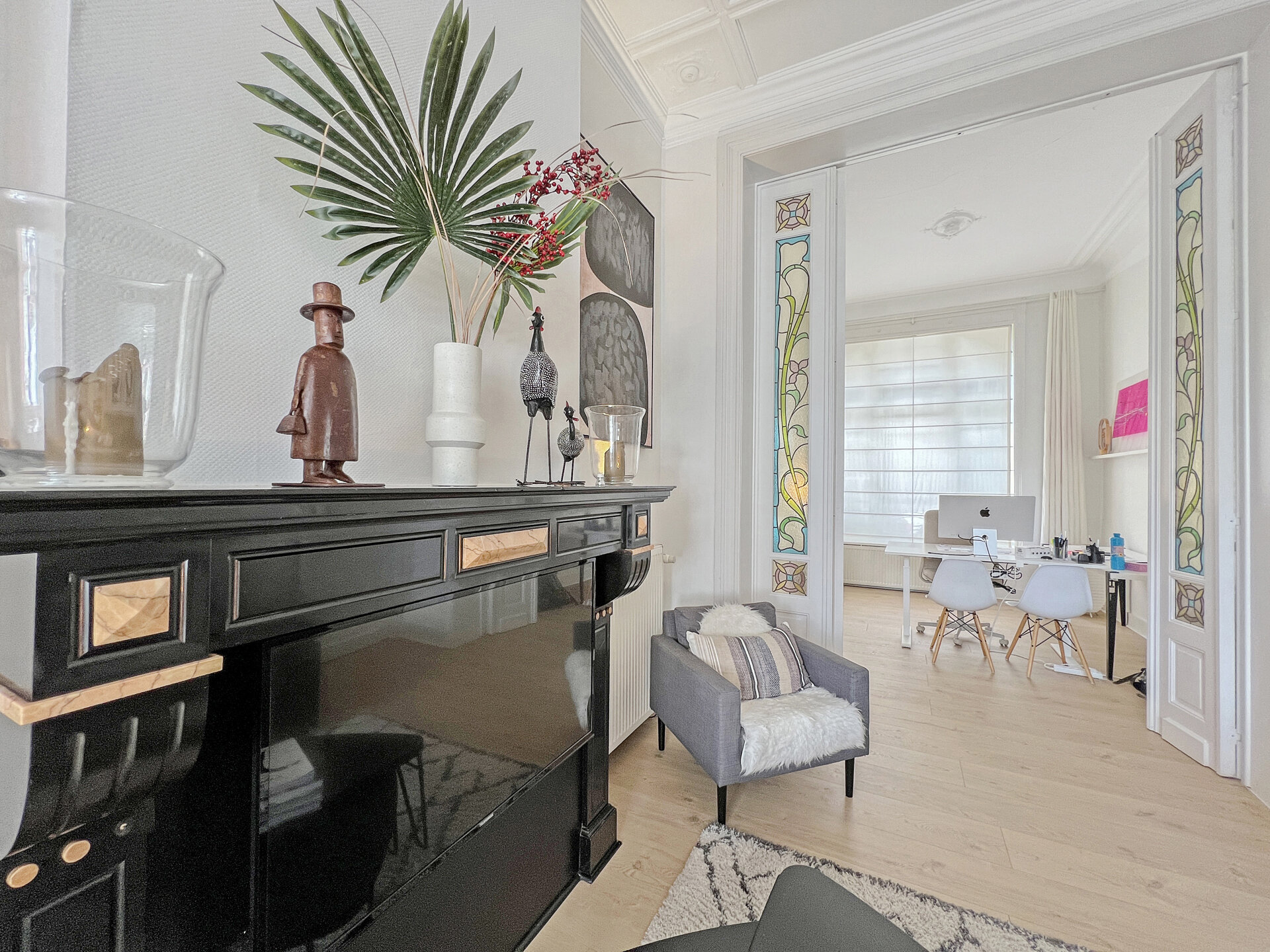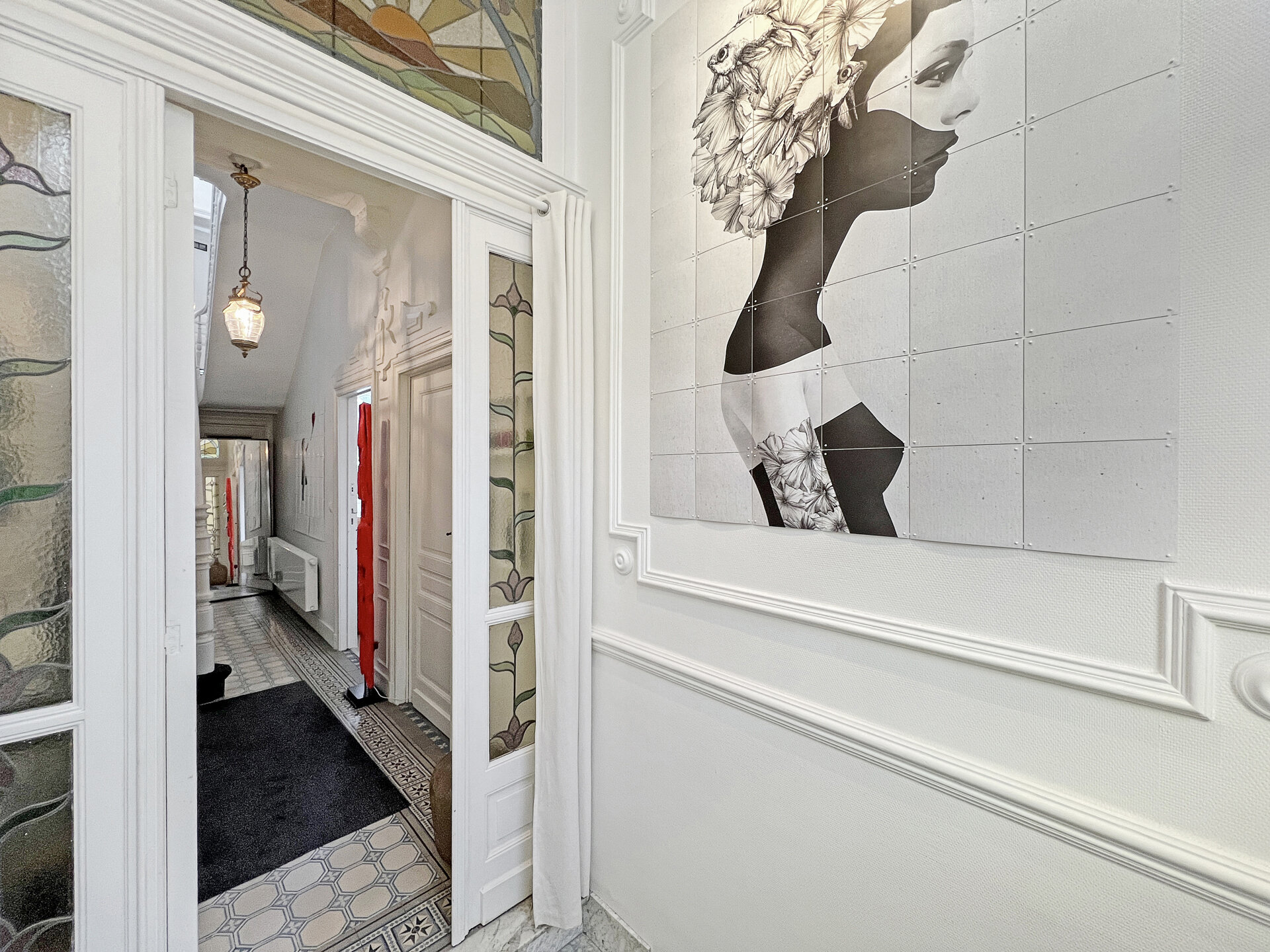 Colorful stained glass windows, open spaces, a remarkable facade, meticulous finishing and undeniable charm characterize our latest addition to Woluwe-saint-Lambert. A house dating back to 1921, discover almost two hundred square meters renovated in 2011 with great taste and boldness. A perfect blend of the old and the new, let yourself be seduced by its many surprises. On the first floor, formerly rented, you'll find a large living room with open fire, a kitchen, a shower room and a bedroom. On the first and second floors, discover the “triplex” with its light-filled living room, super-equipped kitchen, two bedrooms, bathroom and office. Cellars and laundry room complete this home. The icing on the cake is the two exterior entrances: a convivial garden and a superb south-east-facing terrace! A little gem just waiting for you!Property details