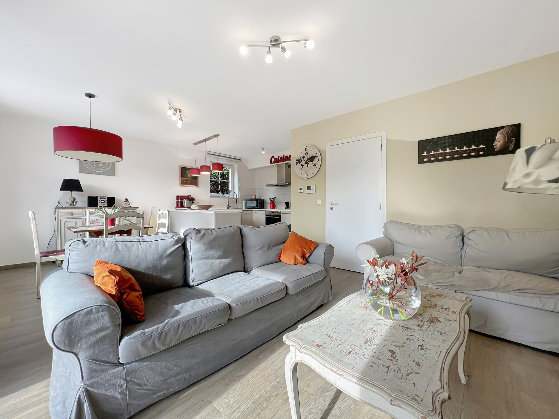 Let yourself be tempted by this delightful ground floor apartment with views over the fields. With a surface area of sixty five square metres, the flat has a large living room, a bright, super-equipped kitchen and a large bedroom with shower room. The four-unit condominium was built in 2016. The property also has storage space: two attics and a bike room. Enjoy a private garden, as well as access to a garden with a large swimming pool for cooling off on summer afternoons!Property details