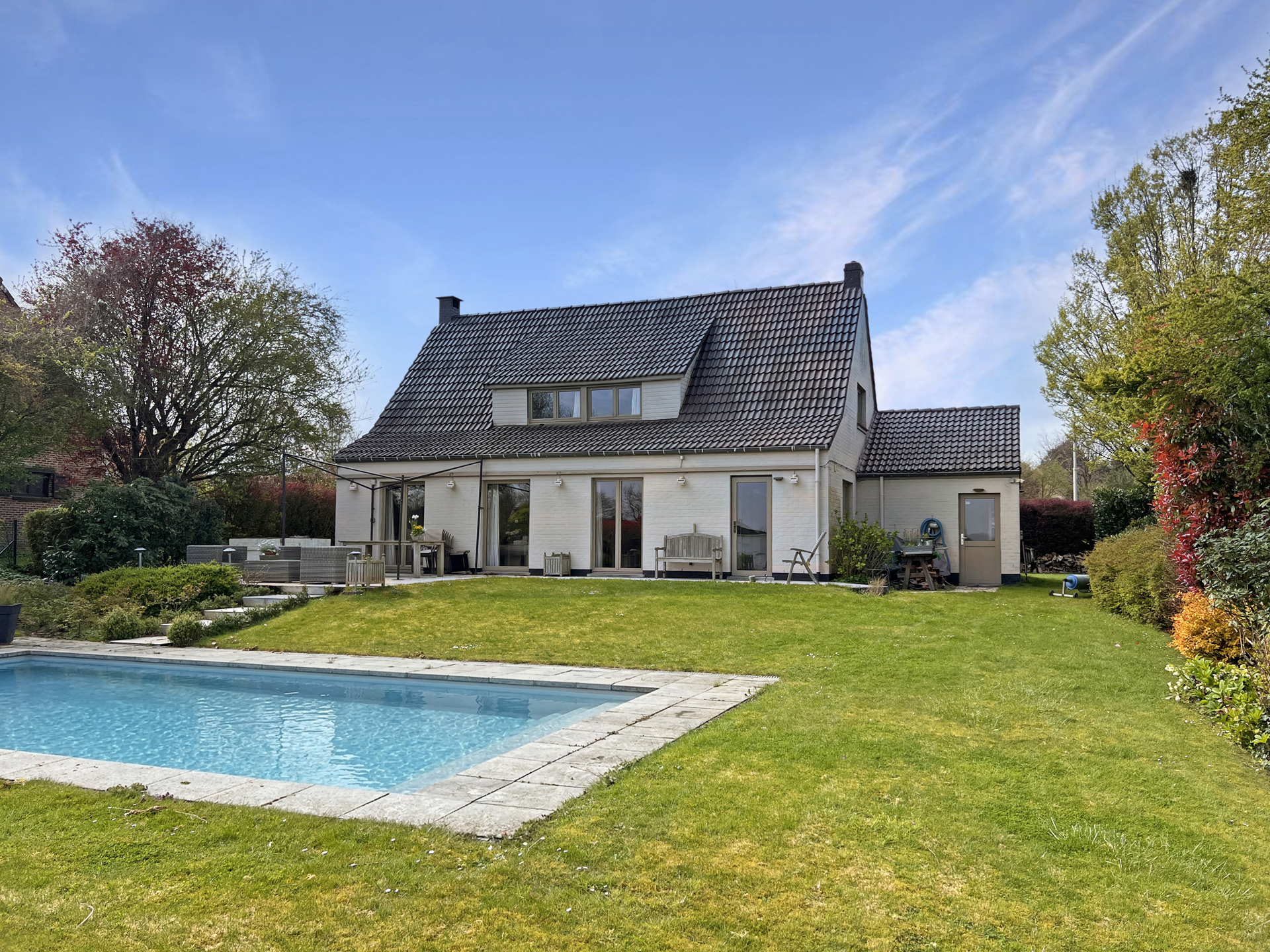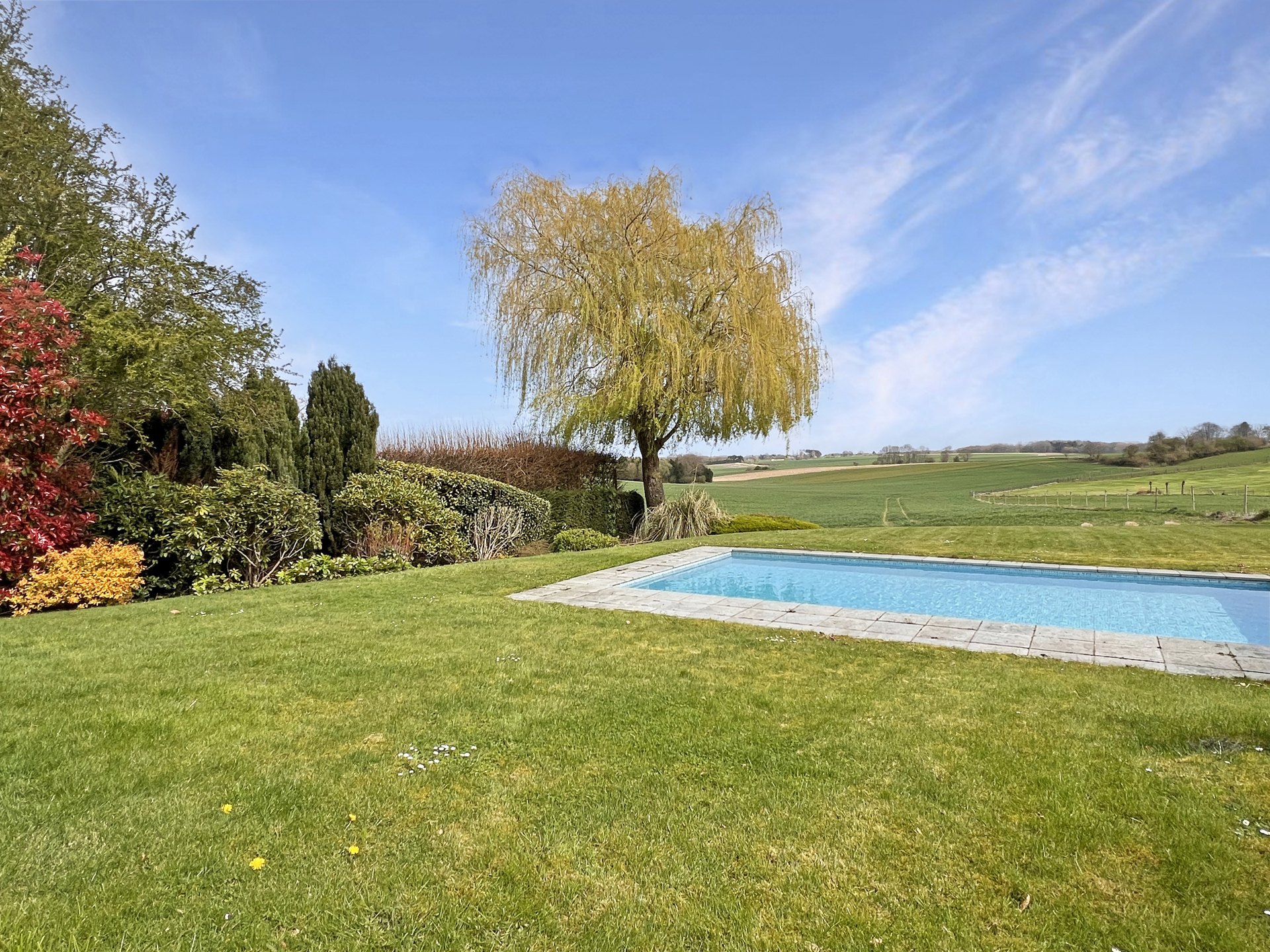Nichée dans un clos intimiste à Plancenoit, cette propriété séduit dès le premier regard par son environnement exceptionnel et sa vue imprenable sur les champs. Un véritable coup de cœur pour les amateurs de calme, de lumière et d’espaces ouverts ! Implantée sur un magnifique terrain de treize ares, la maison bénéficie d’un jardin ouvert avec piscine qui prolonge naturellement la vue sur la campagne environnante. Une sensation d’évasion immédiate… tout en restant proche de toutes les facilités. Construite dans les années septante, la maison présente un charme vintage certain, offrant ainsi une belle opportunité de la repenser selon vos goûts. Sa base saine et ses matériaux de qualité en font un projet idéal pour créer un lieu de vie à votre image. Avec ses cent quatre-vingts mètres carrés, elle propose de beaux volumes lumineux, comprenant trois chambres et un bureau, parfaits pour une vie de famille confortable. Les larges ouvertures apportent une lumière naturelle omniprésente, tandis que le feu ouvert renforce l’atmosphère chaleureuse et cocooning. Cette propriété se distingue par son caractère, son environnement privilégié et son potentiel exceptionnel. Une véritable opportunité pour les amateurs de biens à rénover avec du cachet ! Un bien rare, un cadre unique… vos futures vacances commencent ici !Détails du bien